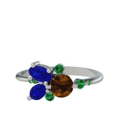 Dumanlı kuvars, lab safir ve yeşil kuvars 8 ayar beyaz altın yüzük