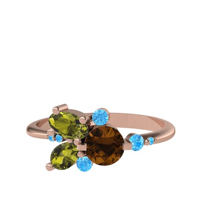 Dumanlı kuvars, peridot ve akuamarin 925 ayar rose altın kaplama gümüş yüzük