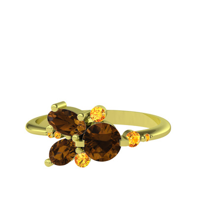 Dumanlı kuvars ve sitrin 18 ayar altın yüzük