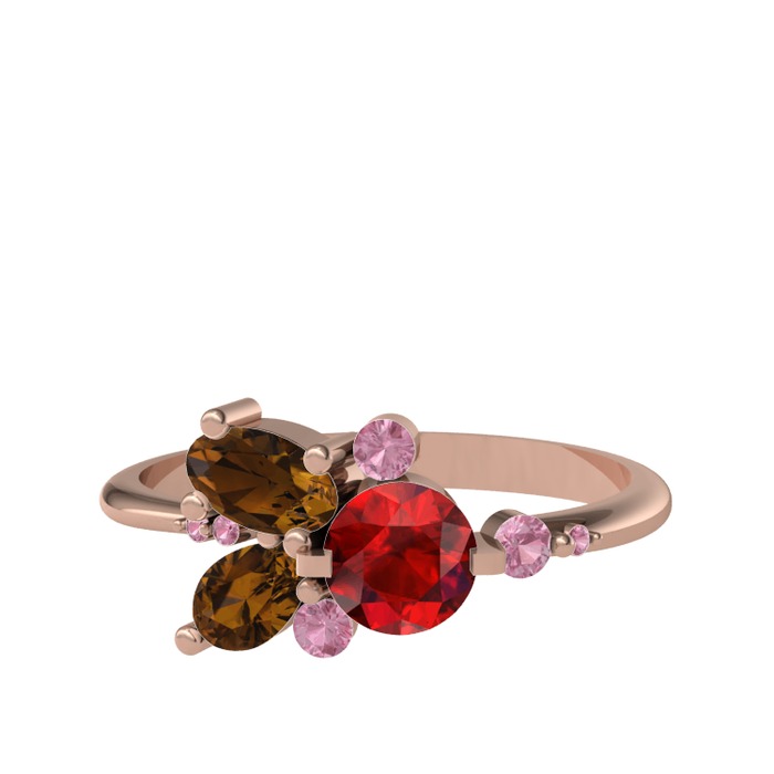 Garnet, dumanlı kuvars ve pembe kuvars 18 ayar rose altın yüzük