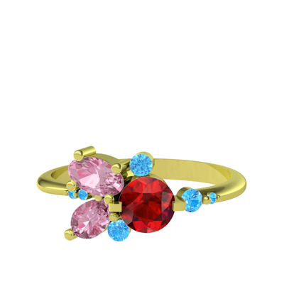 Garnet, pembe kuvars ve akuamarin 925 ayar altın kaplama gümüş yüzük
