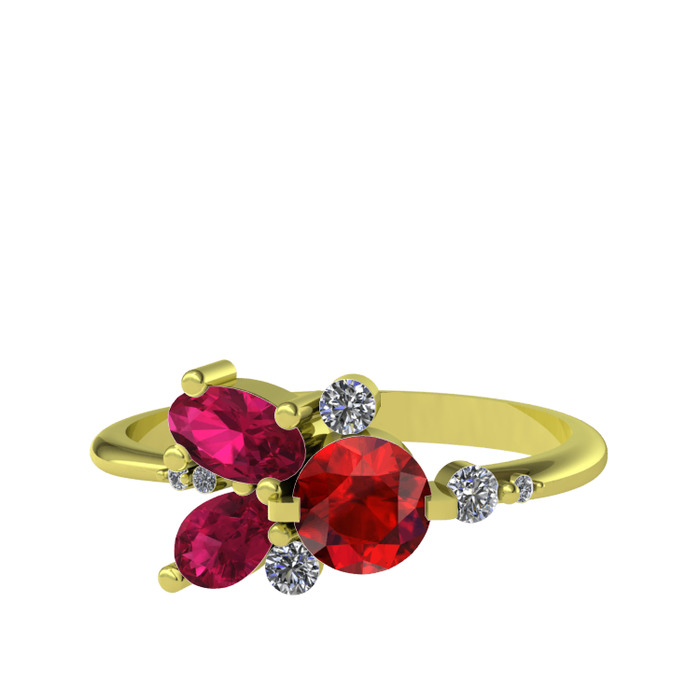 Garnet, rodolit garnet ve swarovski 925 ayar altın kaplama gümüş yüzük