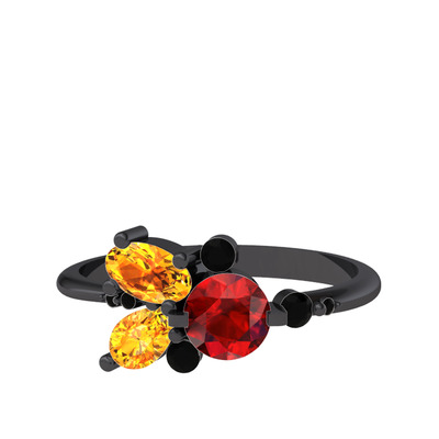 Garnet, sitrin ve siyah zirkon 925 ayar siyah rodyum kaplama gümüş yüzük