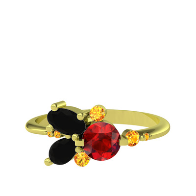 Garnet, siyah zirkon ve sitrin 14 ayar altın yüzük