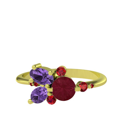 Kök yakut, ametist ve garnet 18 ayar altın yüzük
