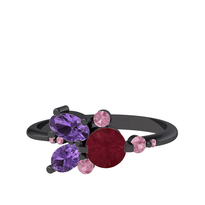 Kök yakut, ametist ve pembe kuvars 925 ayar siyah rodyum kaplama gümüş yüzük