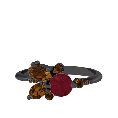 Kök yakut ve dumanlı kuvars 925 ayar siyah rodyum kaplama gümüş yüzük