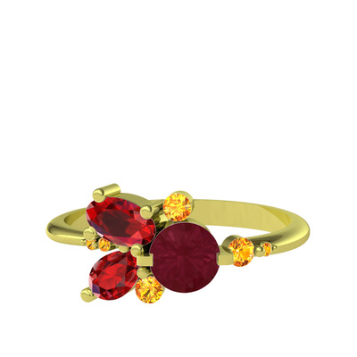 Kök yakut, garnet ve sitrin 14 ayar altın yüzük