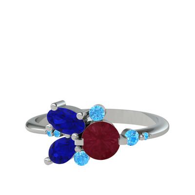 Kök yakut, lab safir ve akuamarin 8 ayar beyaz altın yüzük