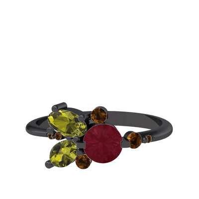 Kök yakut, peridot ve dumanlı kuvars 925 ayar siyah rodyum kaplama gümüş yüzük