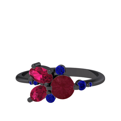 Kök yakut, rodolit garnet ve lab safir 925 ayar siyah rodyum kaplama gümüş yüzük