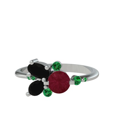 Kök yakut, siyah zirkon ve yeşil kuvars 8 ayar beyaz altın yüzük