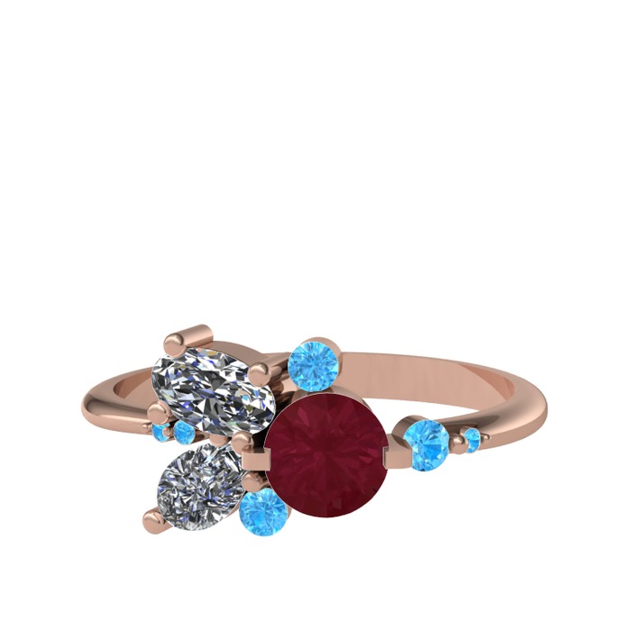 Kök yakut, swarovski ve akuamarin 925 ayar rose altın kaplama gümüş yüzük