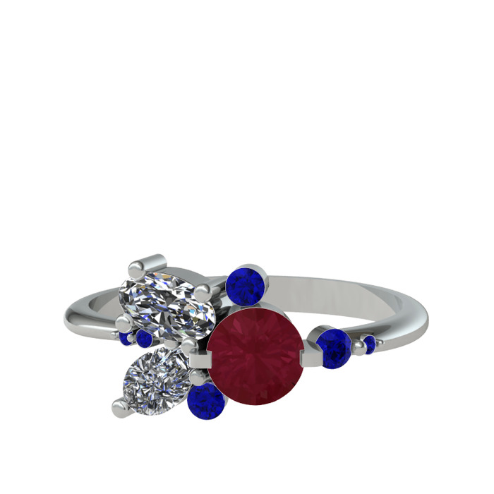 Kök yakut, swarovski ve lab safir 8 ayar beyaz altın yüzük