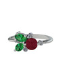 Kök yakut, yeşil kuvars ve swarovski 14 ayar beyaz altın yüzük