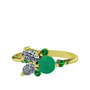 Kök zümrüt, beyaz zirkon ve yeşil kuvars 14 ayar altın yüzük
