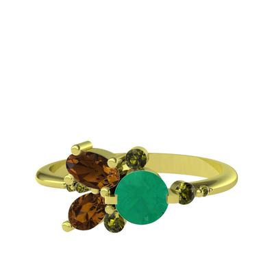 Kök zümrüt, dumanlı kuvars ve peridot 8 ayar altın yüzük