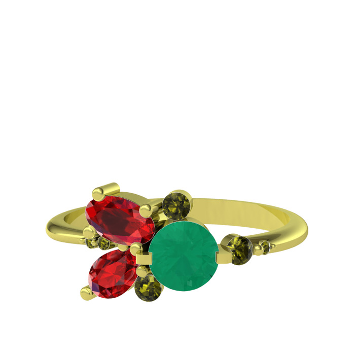 Kök zümrüt, garnet ve peridot 14 ayar altın yüzük