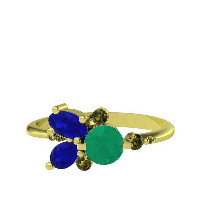 Kök zümrüt, lab safir ve peridot 925 ayar altın kaplama gümüş yüzük