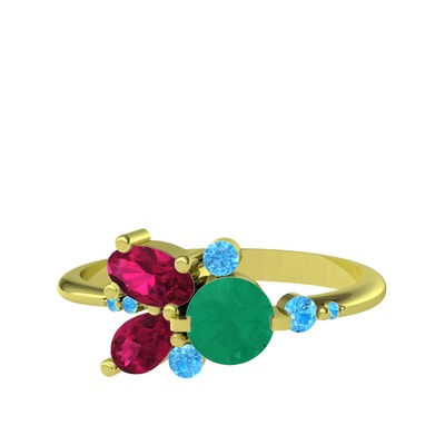Kök zümrüt, rodolit garnet ve akuamarin 925 ayar altın kaplama gümüş yüzük