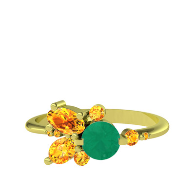 Kök zümrüt ve sitrin 18 ayar altın yüzük