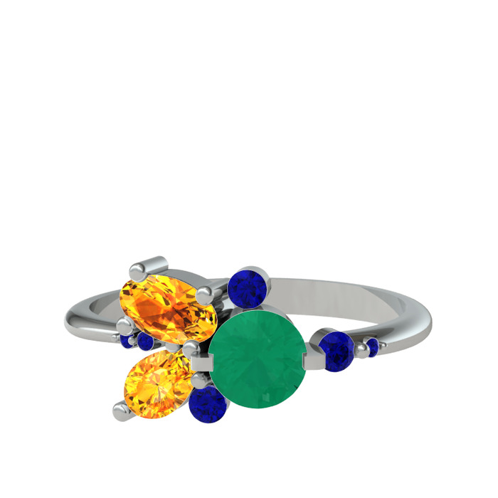 Kök zümrüt, sitrin ve lab safir 8 ayar beyaz altın yüzük