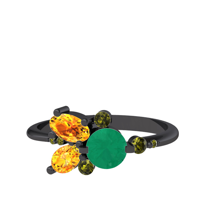 Kök zümrüt, sitrin ve peridot 925 ayar siyah rodyum kaplama gümüş yüzük