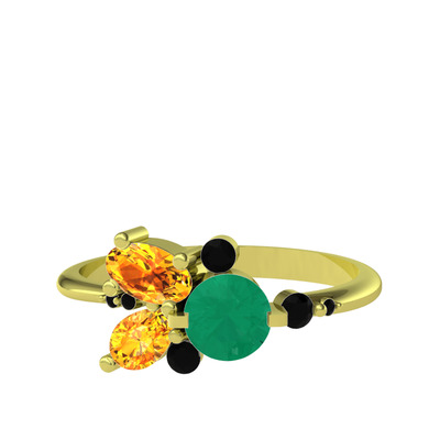 Kök zümrüt, sitrin ve siyah zirkon 925 ayar altın kaplama gümüş yüzük