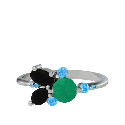 Kök zümrüt, siyah zirkon ve akuamarin 925 ayar gümüş yüzük