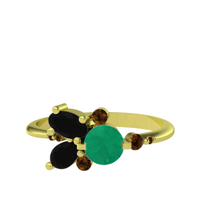 Kök zümrüt, siyah zirkon ve dumanlı kuvars 18 ayar altın yüzük