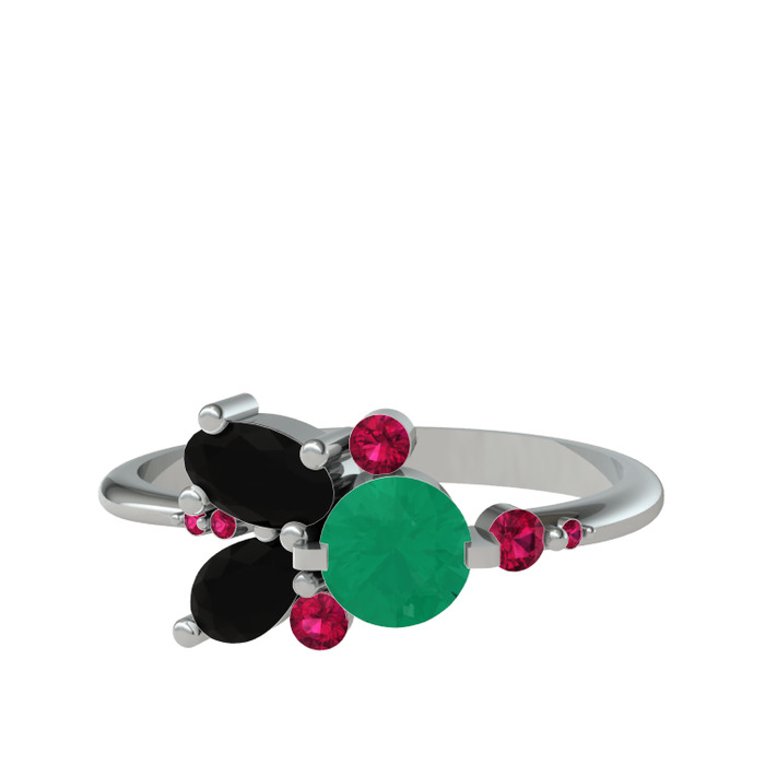 Kök zümrüt, siyah zirkon ve rodolit garnet 18 ayar beyaz altın yüzük