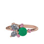 Kök zümrüt, swarovski ve pembe kuvars 8 ayar rose altın yüzük