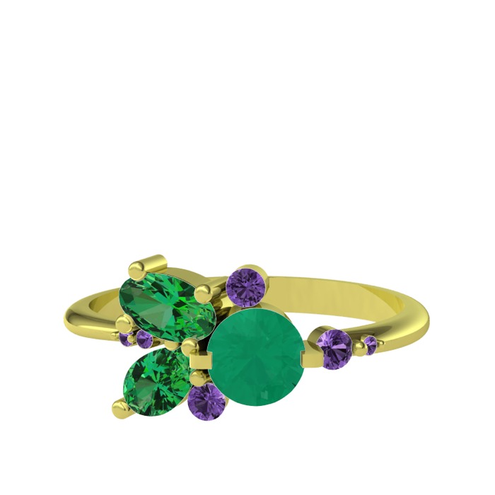 Kök zümrüt, yeşil kuvars ve ametist 14 ayar altın yüzük