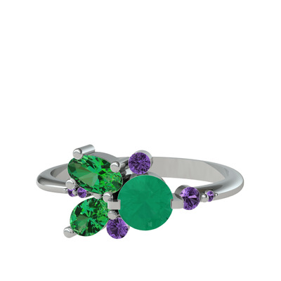 Kök zümrüt, yeşil kuvars ve ametist 14 ayar beyaz altın yüzük