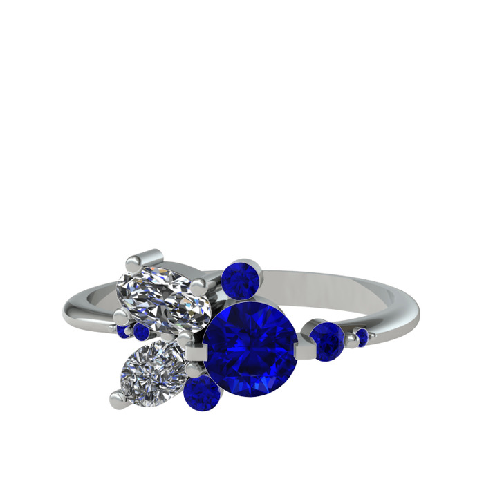 Lab safir ve beyaz zirkon 14 ayar beyaz altın yüzük