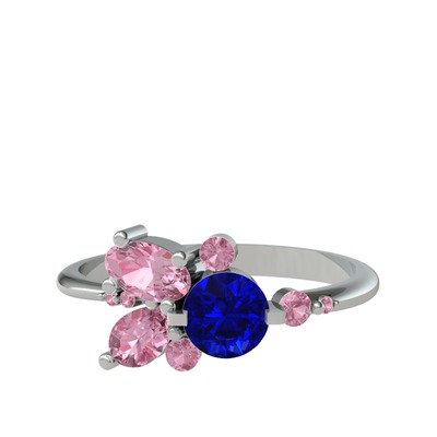Lab safir ve pembe kuvars 18 ayar beyaz altın yüzük