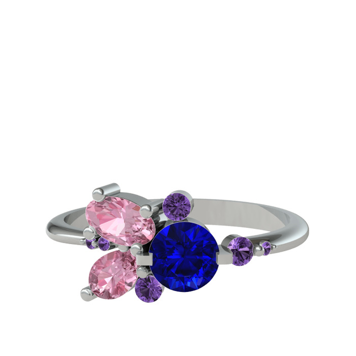 Lab safir, pembe kuvars ve ametist 925 ayar gümüş yüzük
