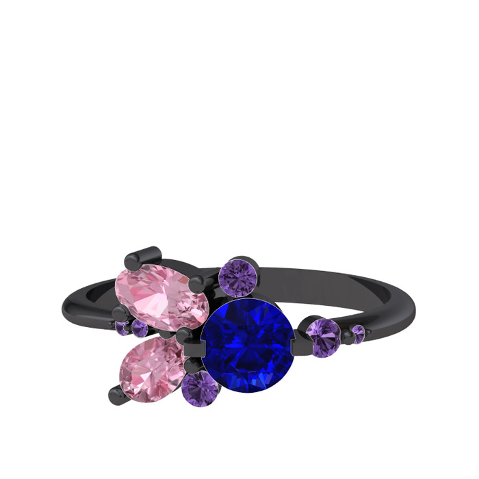 Lab safir, pembe kuvars ve ametist 925 ayar siyah rodyum kaplama gümüş yüzük