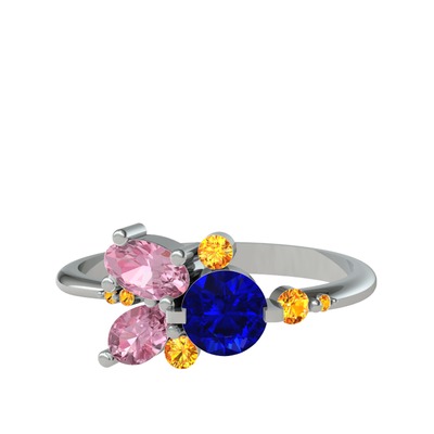Lab safir, pembe kuvars ve sitrin 8 ayar beyaz altın yüzük