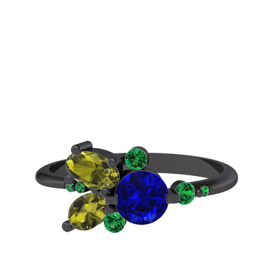 Lab safir, peridot ve yeşil kuvars 925 ayar siyah rodyum kaplama gümüş yüzük