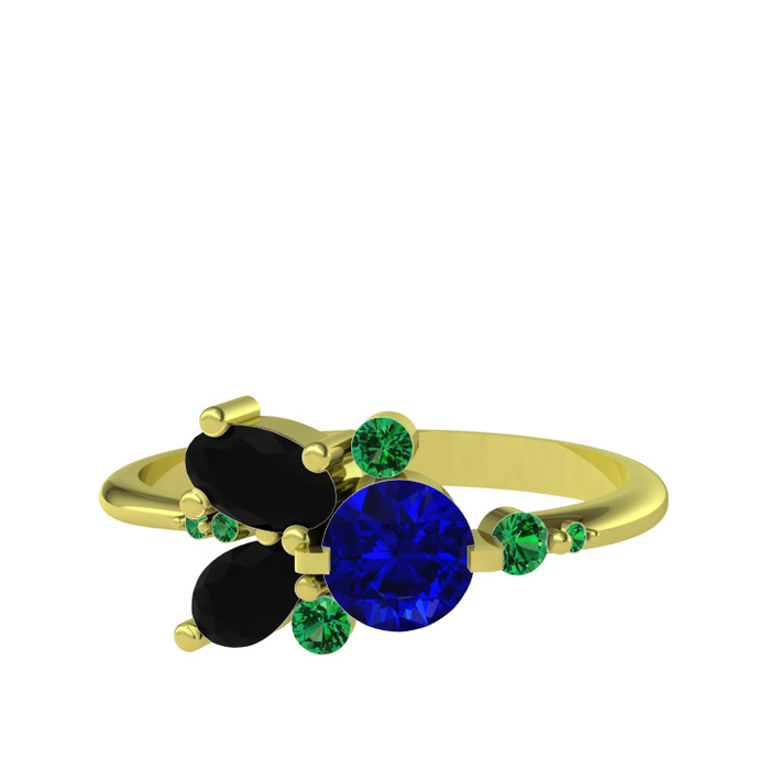Lab safir, siyah zirkon ve yeşil kuvars 18 ayar altın yüzük