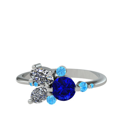 Lab safir, swarovski ve akuamarin 925 ayar gümüş yüzük