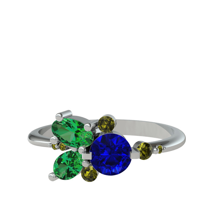 Lab safir, yeşil kuvars ve peridot 18 ayar beyaz altın yüzük