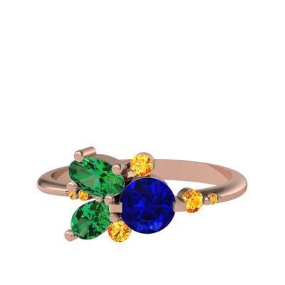 Lab safir, yeşil kuvars ve sitrin 8 ayar rose altın yüzük