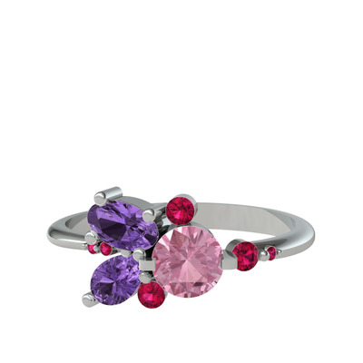 Pembe kuvars, ametist ve rodolit garnet 925 ayar gümüş yüzük