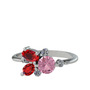 Pembe kuvars, garnet ve beyaz zirkon 8 ayar beyaz altın yüzük