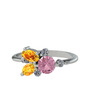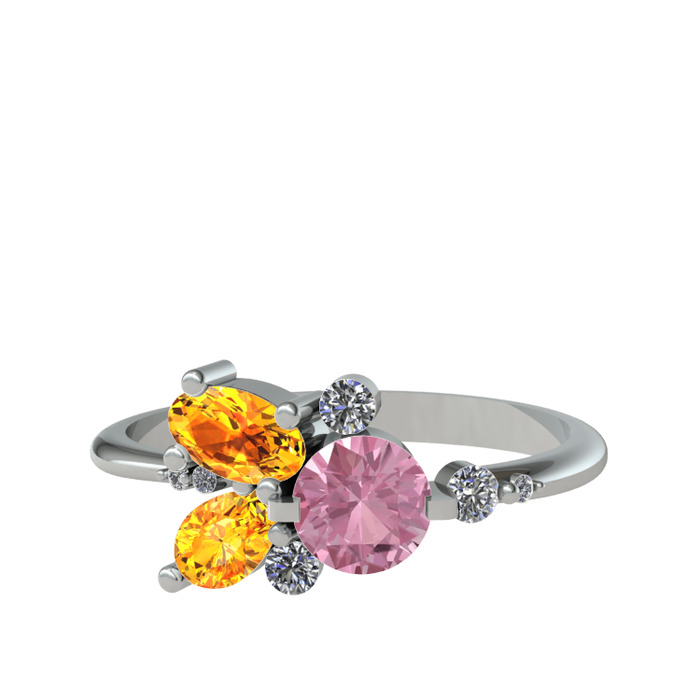 Pembe kuvars, sitrin ve beyaz zirkon 8 ayar beyaz altın yüzük