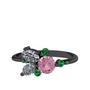 Pembe kuvars, swarovski ve yeşil kuvars 925 ayar siyah rodyum kaplama gümüş yüzük
