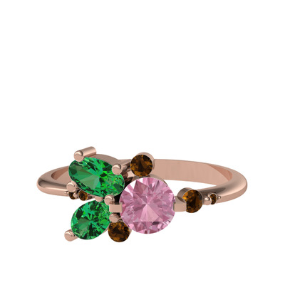 Pembe kuvars, yeşil kuvars ve dumanlı kuvars 925 ayar rose altın kaplama gümüş yüzük