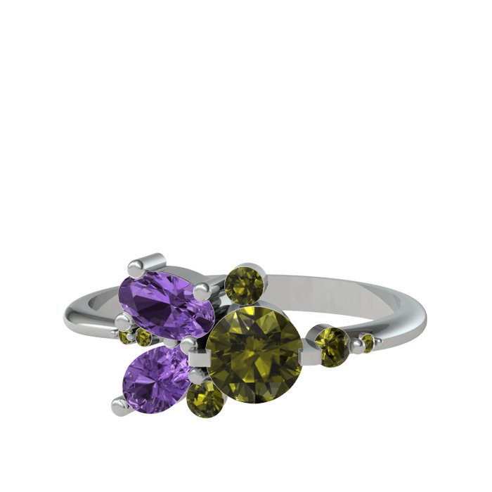 Peridot ve ametist 8 ayar beyaz altın yüzük